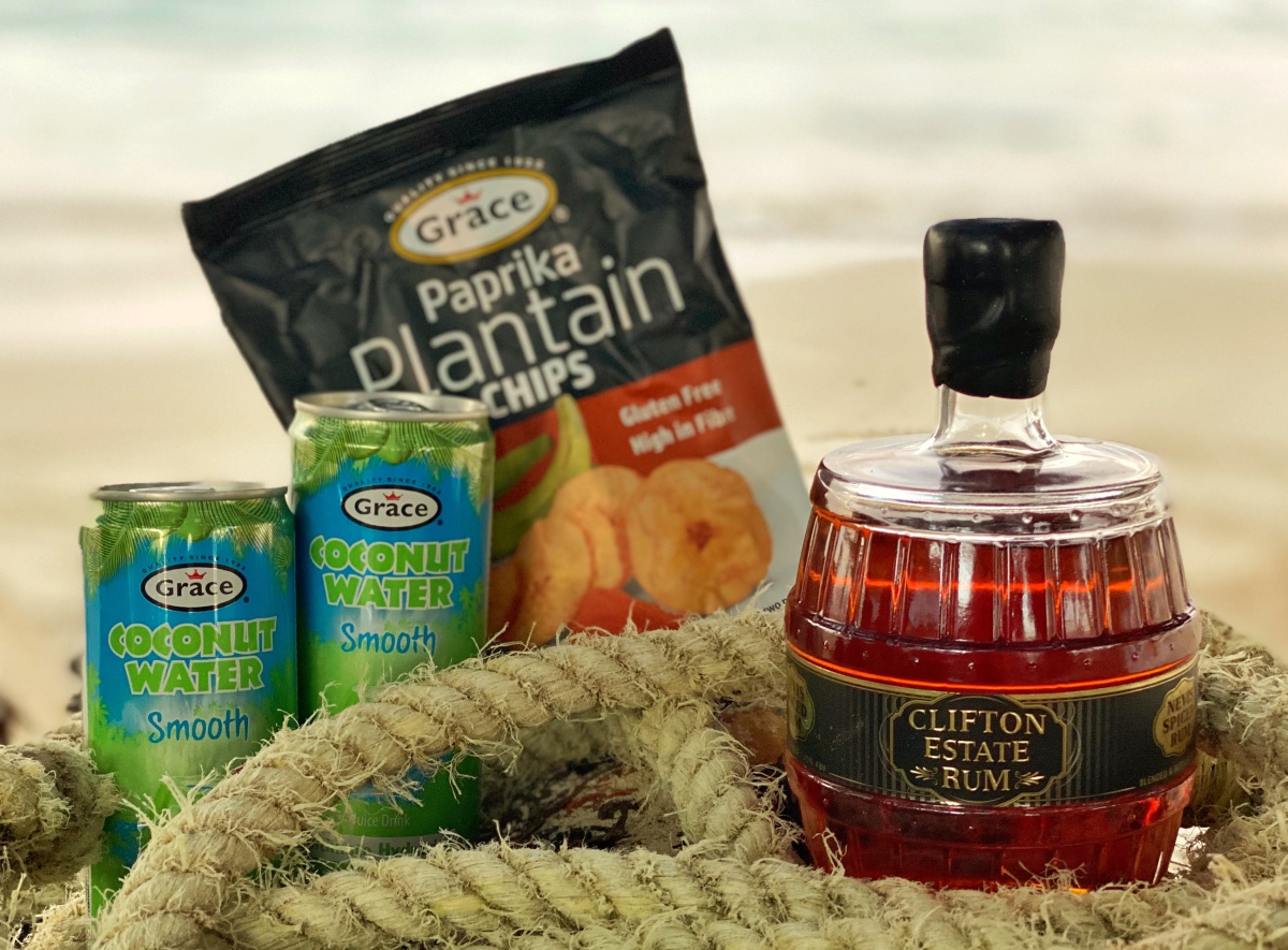 Thameside Rum Signature Blend – 70cl/40% alc./vol x1 Long Tail Blood Orange Mixer – 200ml x1 Long Tail Island Spice Mixer – 200ml Reggae Reggae Crisp - 40g Nim’s Grapefruit Infusions Slices (snacks may contain traces of nuts and other